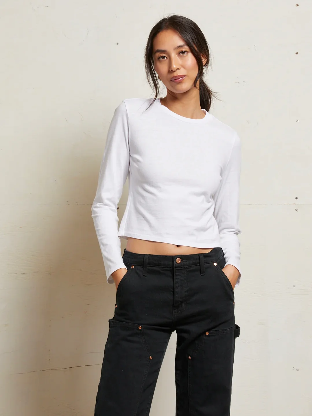 you loved the lisa tee—so we gave her sleeves. this long-sleeve version is made from recycled cotton with a body-skimming fit that hits right at your natural waist. full length, never cropped, and ready to be on heavy rotation.