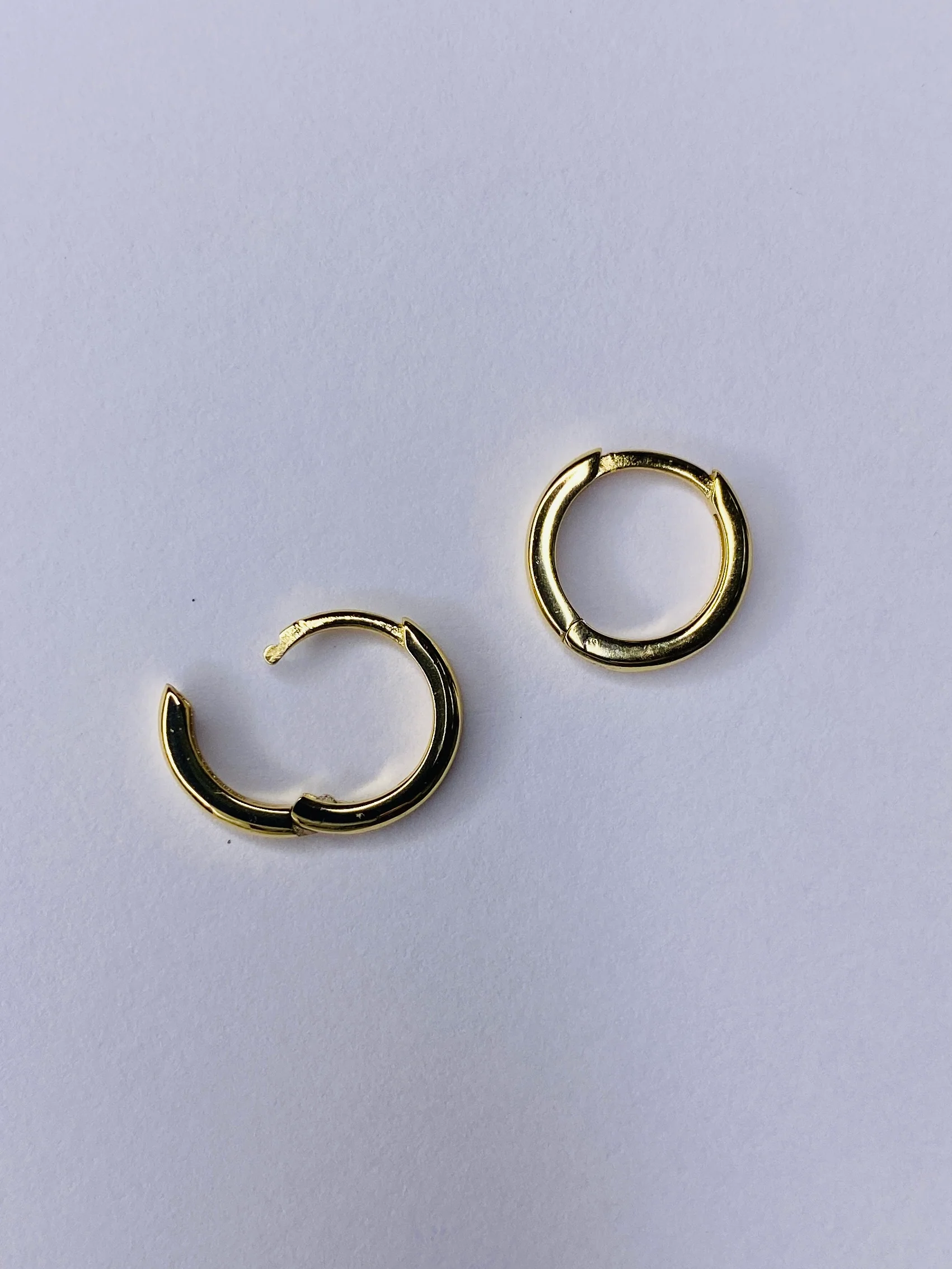 Sterling silver must have basic huggy hoop stud. 1/2" Hinged for easy on/off. 14k gold plate or rhodium plate