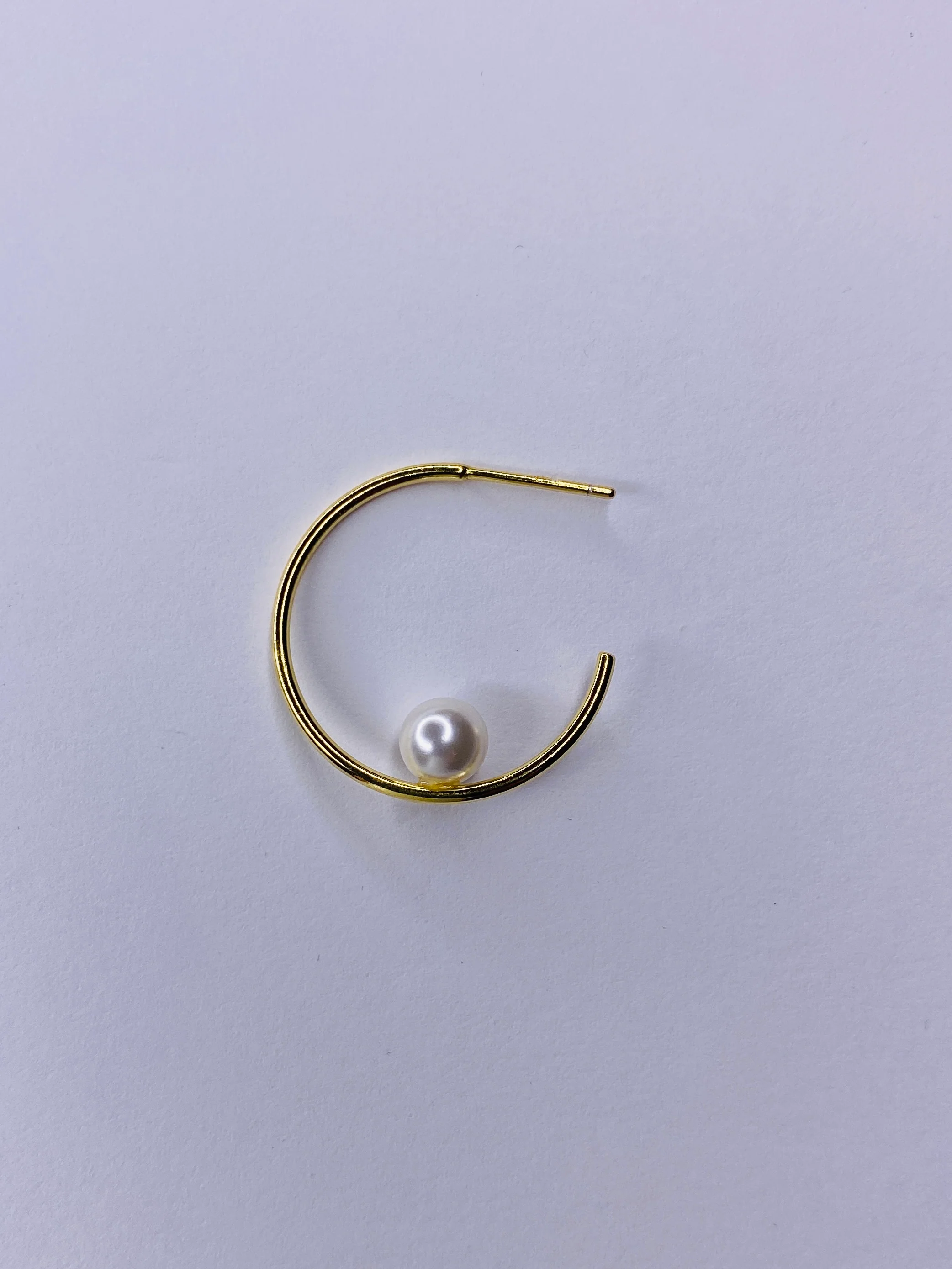 Sterling silver 3/4 hoop pearl stud. 1" diameter. 14k gold plate or rhodium plate